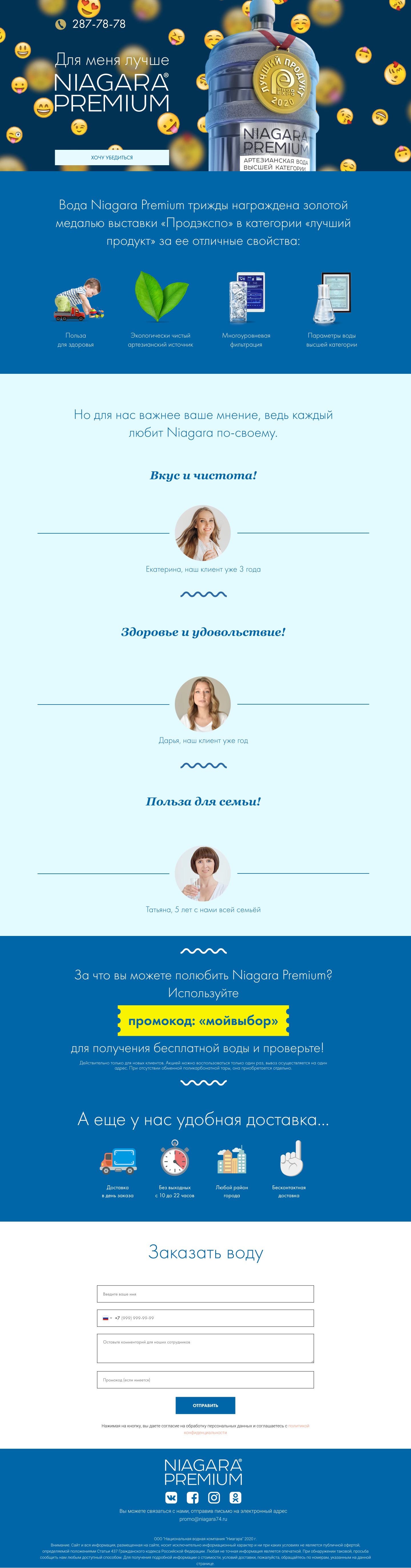 Разработка промо-страницы для новых клиентов доставки воды Niagara Premium